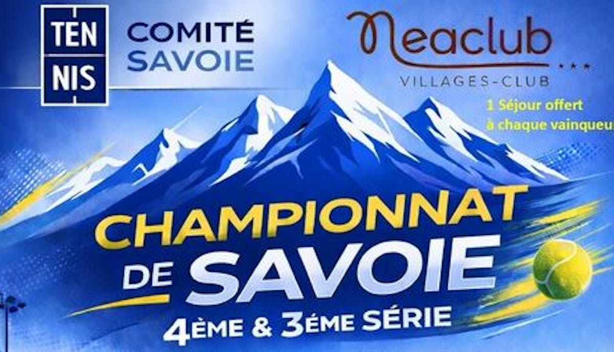 Les inscriptions sont ouvertes pour les Championnats de Savoie de Tennis 2026 (3ᵉ et 4ᵉ série) : tentez le titre de Champion de Savoie et remportez un séjour offert par Néaclub.